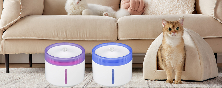 نافورة مياه الحيوانات الأليفة الذكية الأوتوماتيكية بإضاءة ليلية LED