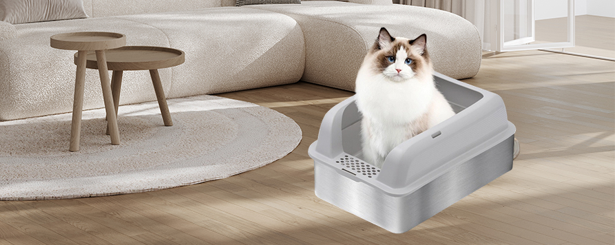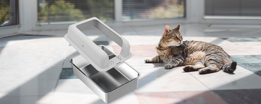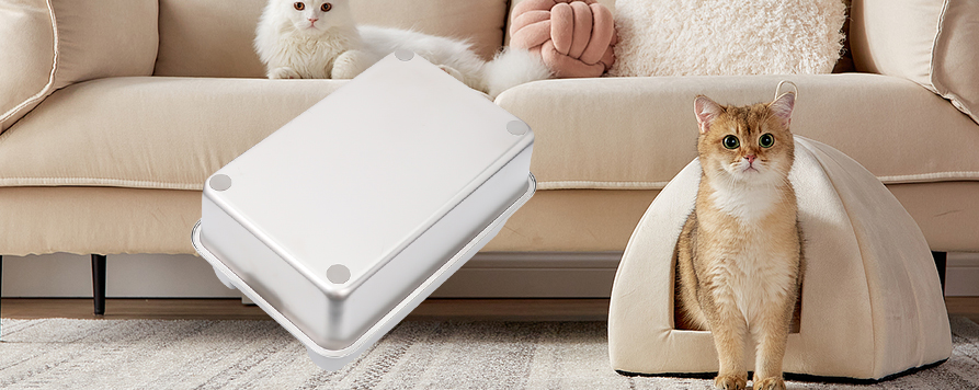 صندوق فضلات القطط مصنوع من الفولاذ المقاوم للصدأ ومقاوم للرذاذ